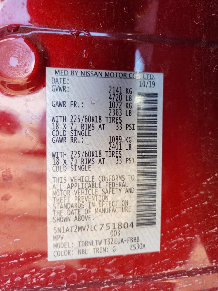 2020 NISSAN ROGUE - 5N1AT2MV7LC751804, колір - Бургундія, 2.5, Бензин, Повний привід із США