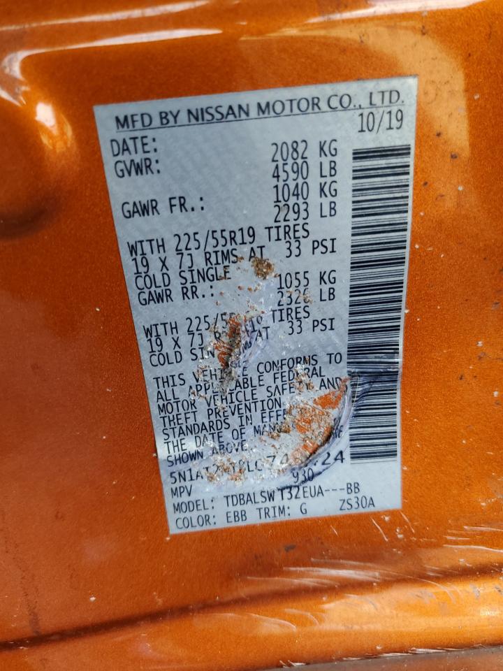 2020 NISSAN ROGUE - 5N1AT2MT8LC744424, колір - Апельсиновий, 2.5, Бензин, із США