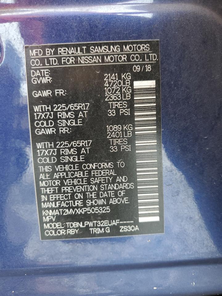 2019 NISSAN ROGUE - KNMAT2MVXKP505325, колір - Синій, 2.5, Бензин, Повний привід із США