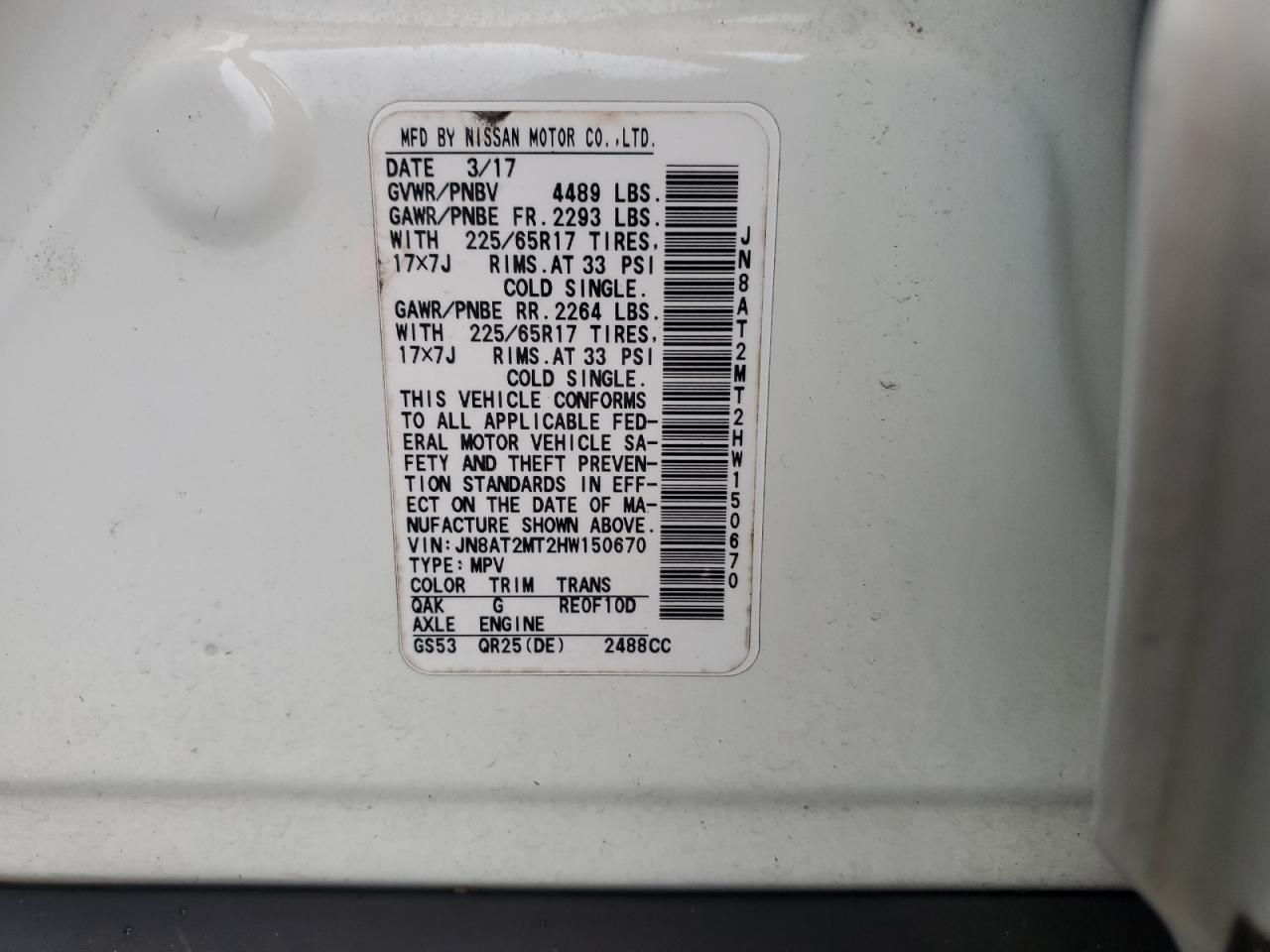 2017 NISSAN ROGUE - JN8AT2MT2HW150670, колір - Білий, 2.5, Бензин, із США