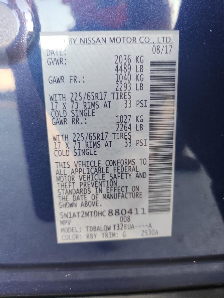 2017 NISSAN ROGUE - 5N1AT2MT0HC880411, колір - Синій, 2.5, Бензин, із США
