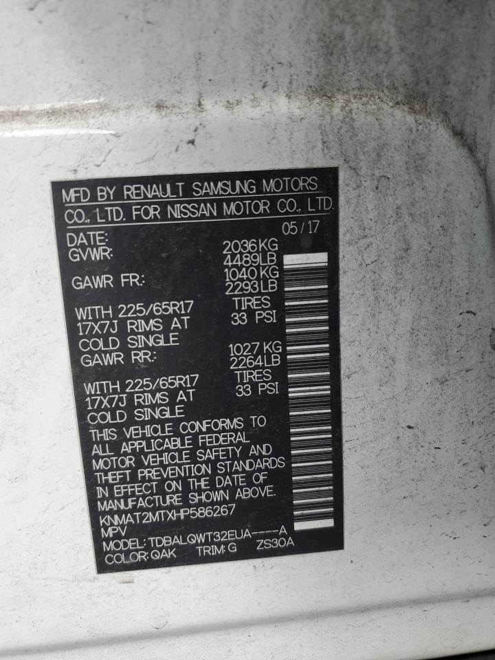 2017 NISSAN ROGUE - KNMAT2MTXHP586267, колір - Білий, 2.5, Бензин, із США