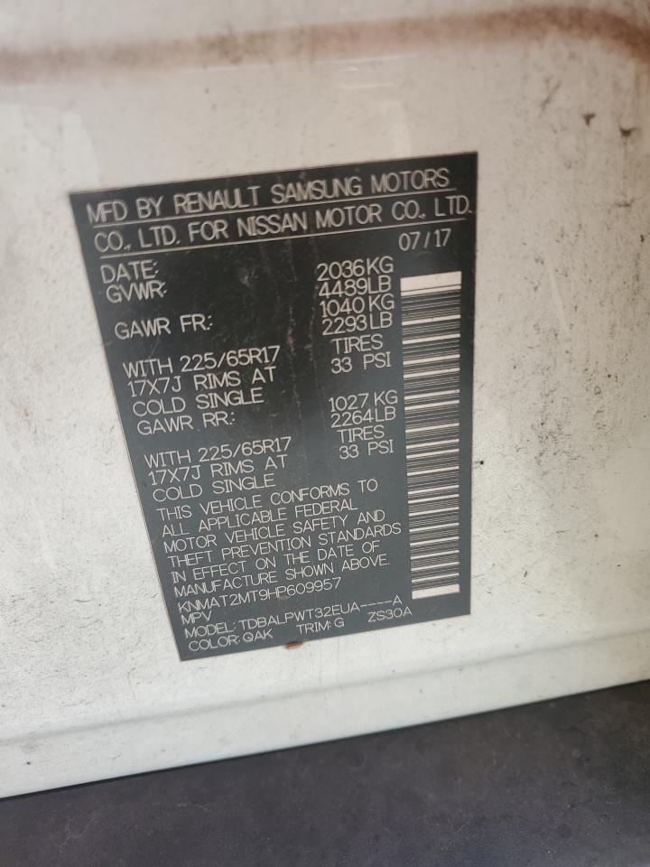 2017 NISSAN ROGUE - KNMAT2MT9HP609957, колір - Білий, 2.5, Бензин, із США