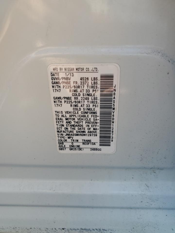 2013 NISSAN ROGUE - JN8AS5MV6DW129739, колір - Білий, 2.5, Бензин, Повний привід із США