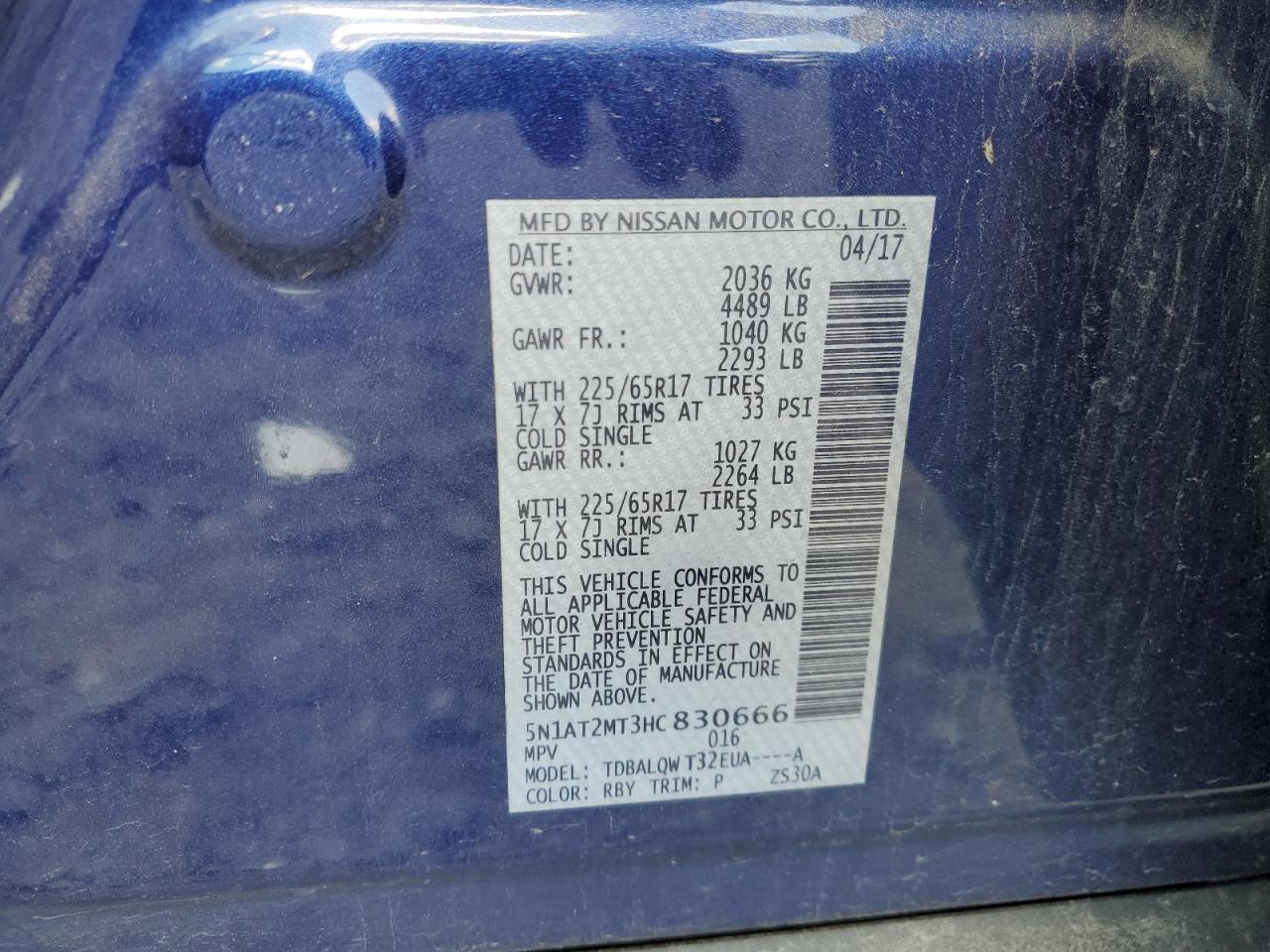 2017 NISSAN ROGUE - 5N1AT2MT3HC830666, колір - Синій, 2.5, Бензин, із США