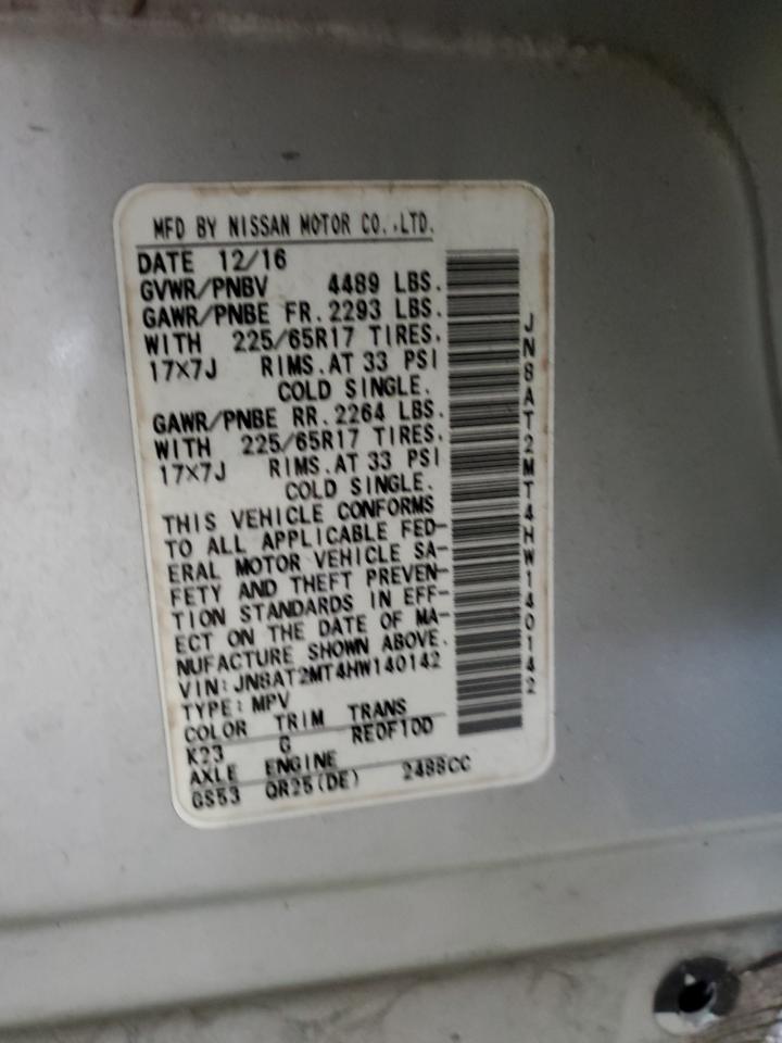 2017 NISSAN ROGUE - JN8AT2MT4HW140142, колір - Срібний, 2.5, Бензин, із США