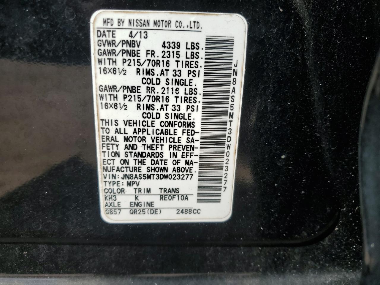 2013 NISSAN ROGUE - JN8AS5MT3DW023277, колір - Чорний, 2.5, Бензин, із США