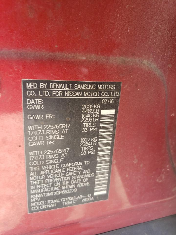 2016 NISSAN ROGUE - KNMAT2MTXGP663279, колір - Червоний, 2.5, Бензин, із США