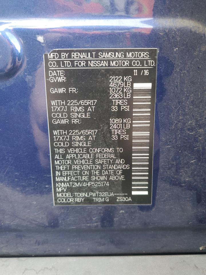 2017 NISSAN ROGUE - KNMAT2MV4HP525174, колір - Синій, 2.5, Бензин, Повний привід із США