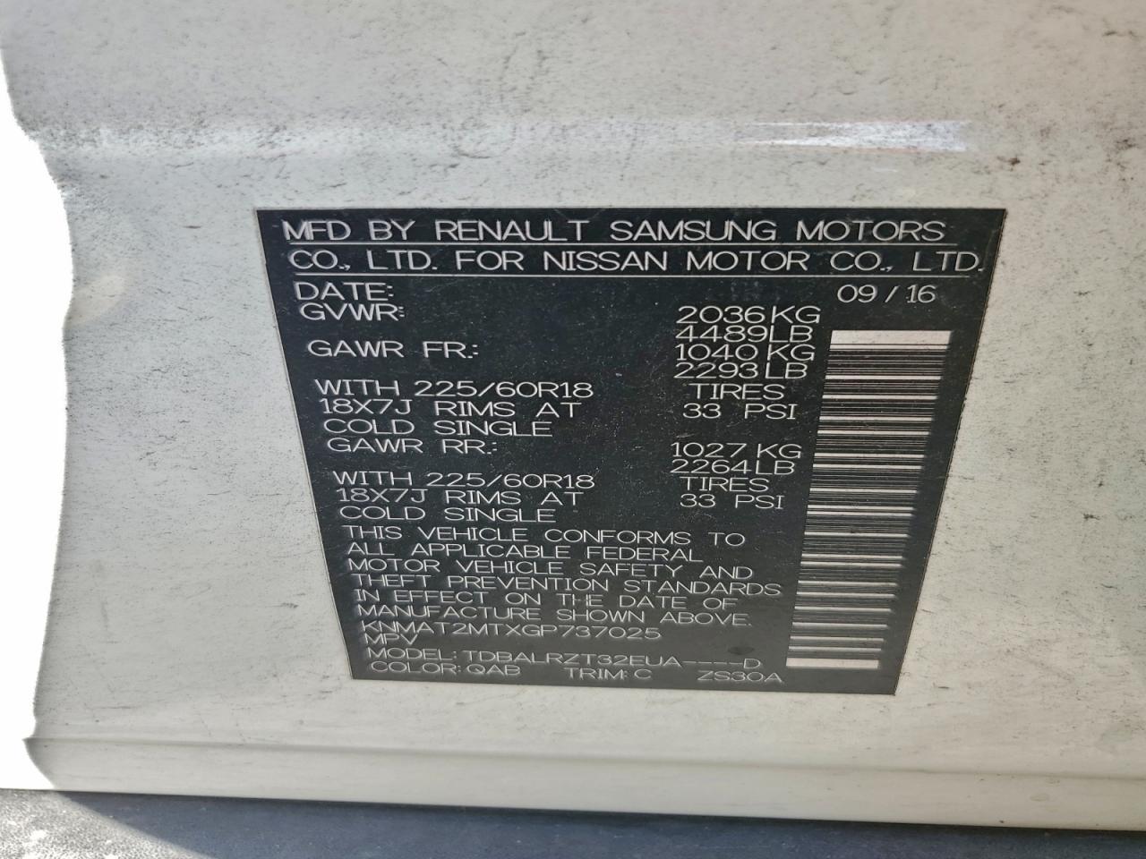 2016 NISSAN ROGUE - KNMAT2MTXGP737025, колір - Білий, 2.5, Бензин, із США