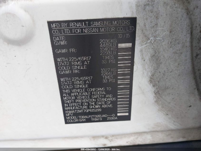 2016 NISSAN ROGUE S