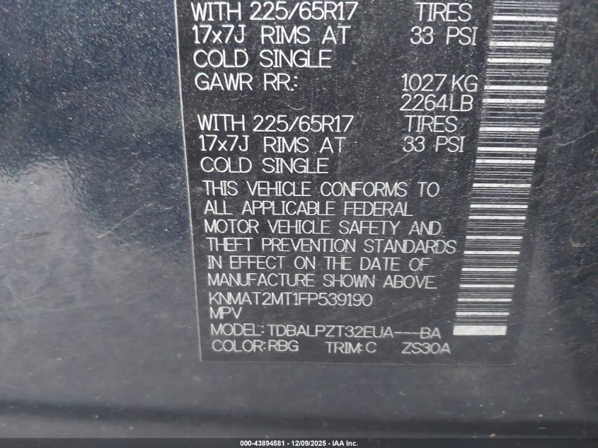 Колір СинійЦиліндри 4Привід Передній привідVIN KNMAT2MT1FP539190Стан СтаціонарноУшкодження Передня або задня