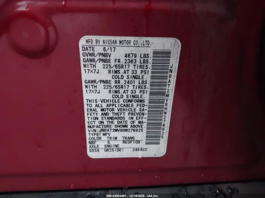 2017 NISSAN ROGUE - JN8AT2MV8HW276825, колір - Червоний, 2.5, Бензин, Повний привід із США