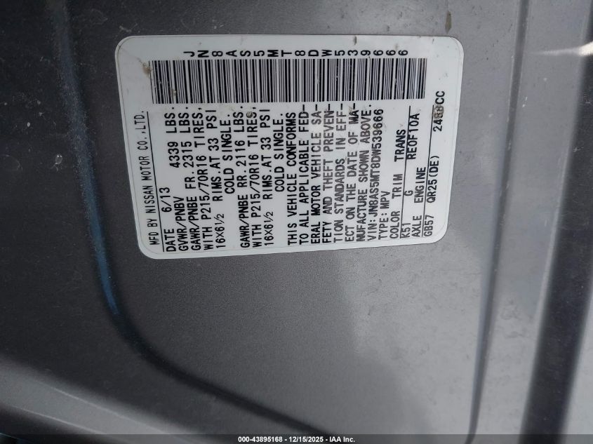 2013 NISSAN ROGUE - JN8AS5MT8DW539666, колір - Сірий, 2.5, Бензин, Передній привід із США