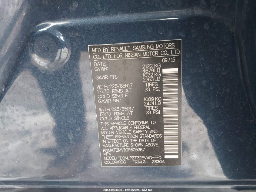 2016 NISSAN ROGUE - KNMAT2MV1GP605367, колір - Синій, 2.5, Бензин, Повний привід із США