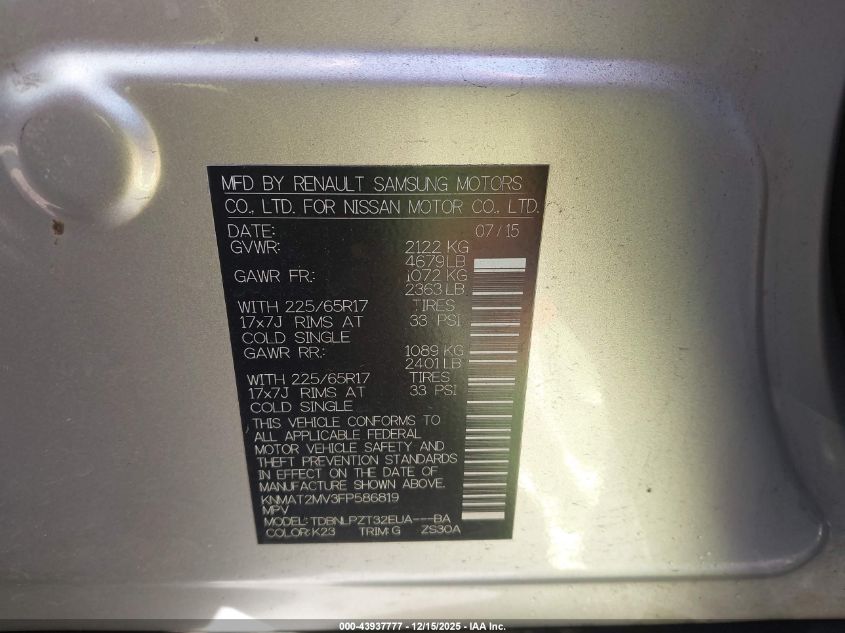 2015 NISSAN ROGUE S