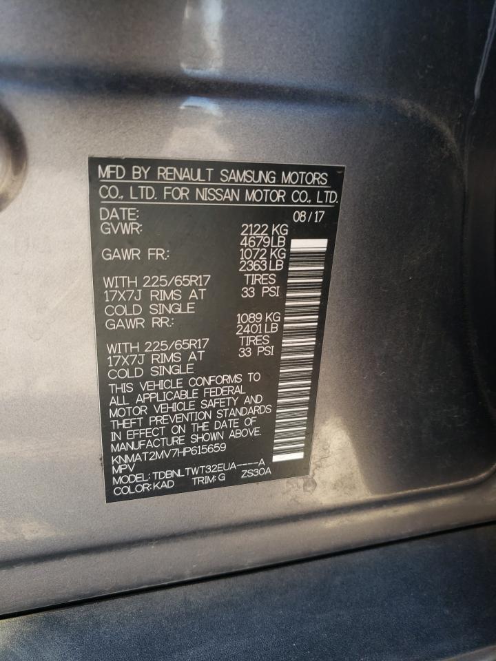 2017 NISSAN ROGUE - KNMAT2MV7HP615659, колір - Сірий, 2.5, Бензин, Повний привід із США