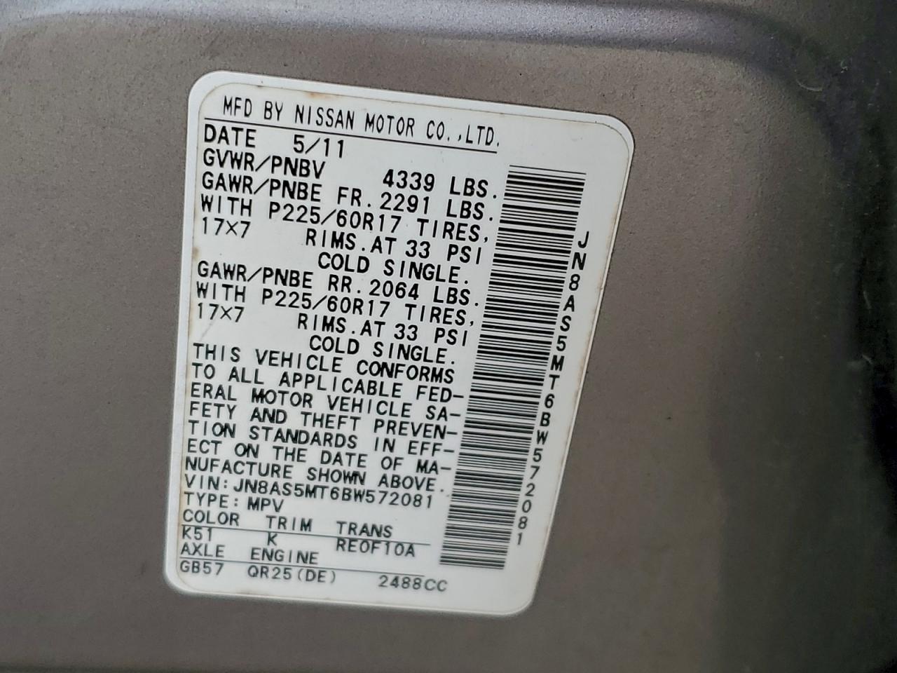 2011 NISSAN ROGUE - JN8AS5MT6BW572081, колір - Сірий, 2.5, Бензин, із США