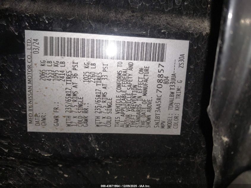 2024 NISSAN ROGUE - 5N1BT3AA5RC708857, колір - Чорний, 1.5, Бензин, Передній привід із США