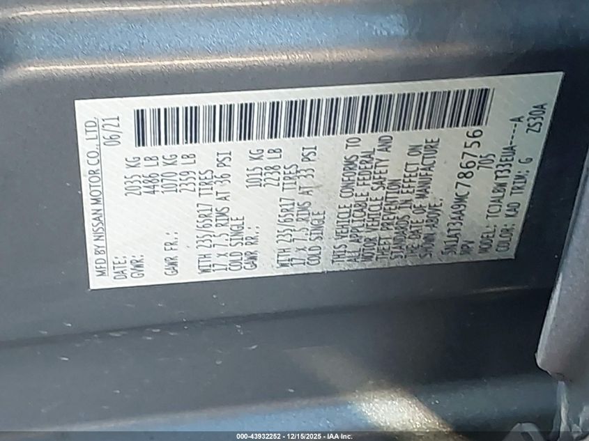 2021 NISSAN ROGUE - 5N1AT3AA9MC786756, колір - Сірий, 2.5, Бензин, Передній привід із США