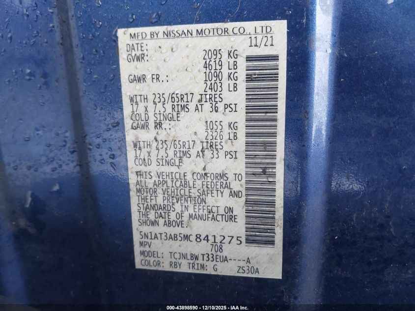 2021 NISSAN ROGUE - 5N1AT3AB5MC841275, колір - Синій, 2.5, Бензин, Повний привід із США
