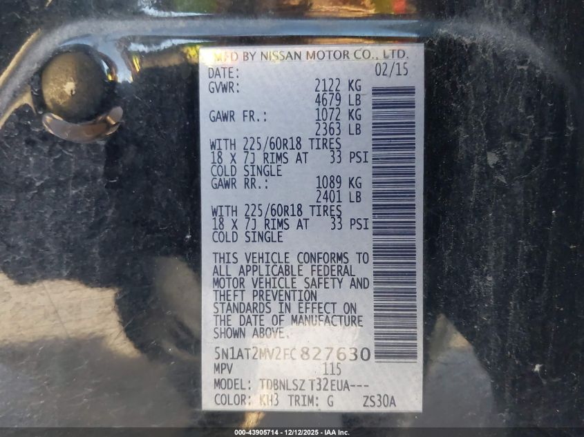 2015 NISSAN ROGUE - 5N1AT2MV2FC827630, колір - Чорний, 2.5, Бензин, Повний привід із США