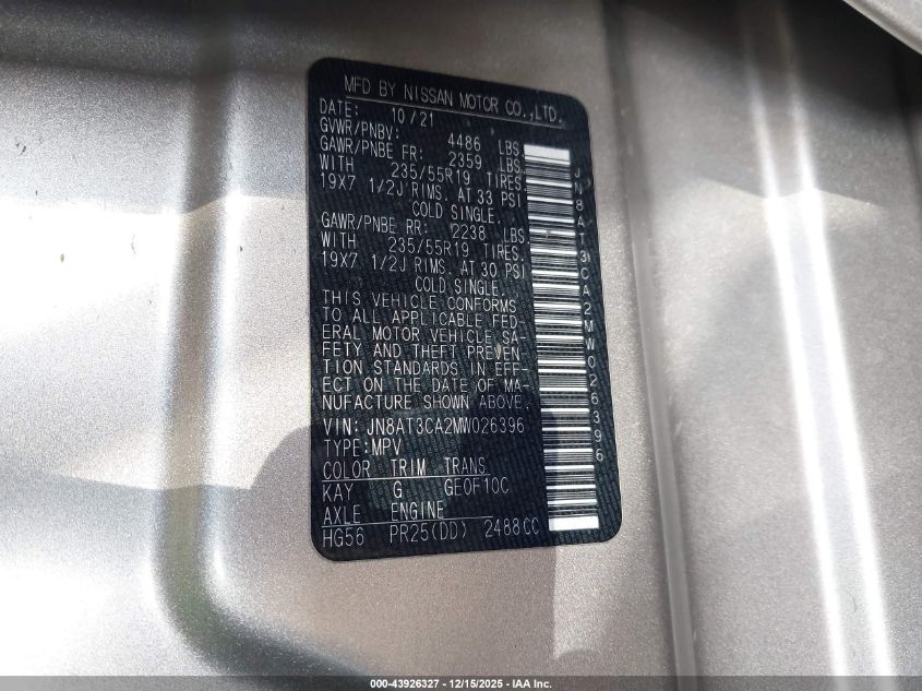 2021 NISSAN ROGUE - JN8AT3CA2MW026396, колір - Загар, 2.5, Бензин, Передній привід із США