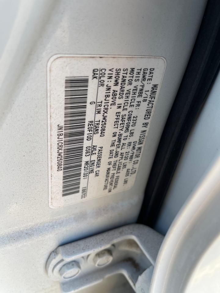 Колір БілийЦиліндри 4Привід Повний привідVIN JN1BJ1CRXJW250840Стан Заводиться та їде (перевірено)Ушкодження Передня або задняДата аукціона 2025-10-07