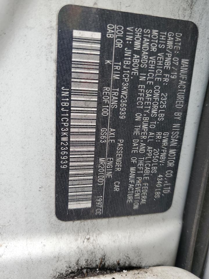 Колір БілийЦиліндри 4VIN JN1BJ1CP3KW236939Стан ЗаводитьсяУшкодження З боківДата аукціона 2025-10-07