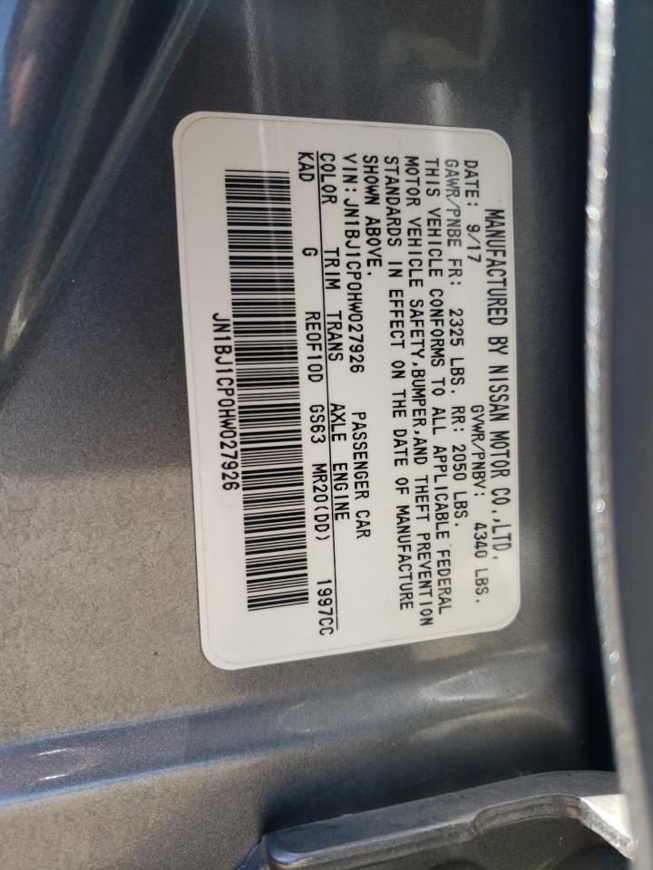 Колір СірийЦиліндри 4VIN JN1BJ1CP0HW027926Стан Заводиться та їде (перевірено)Дата аукціона 2025-10-07