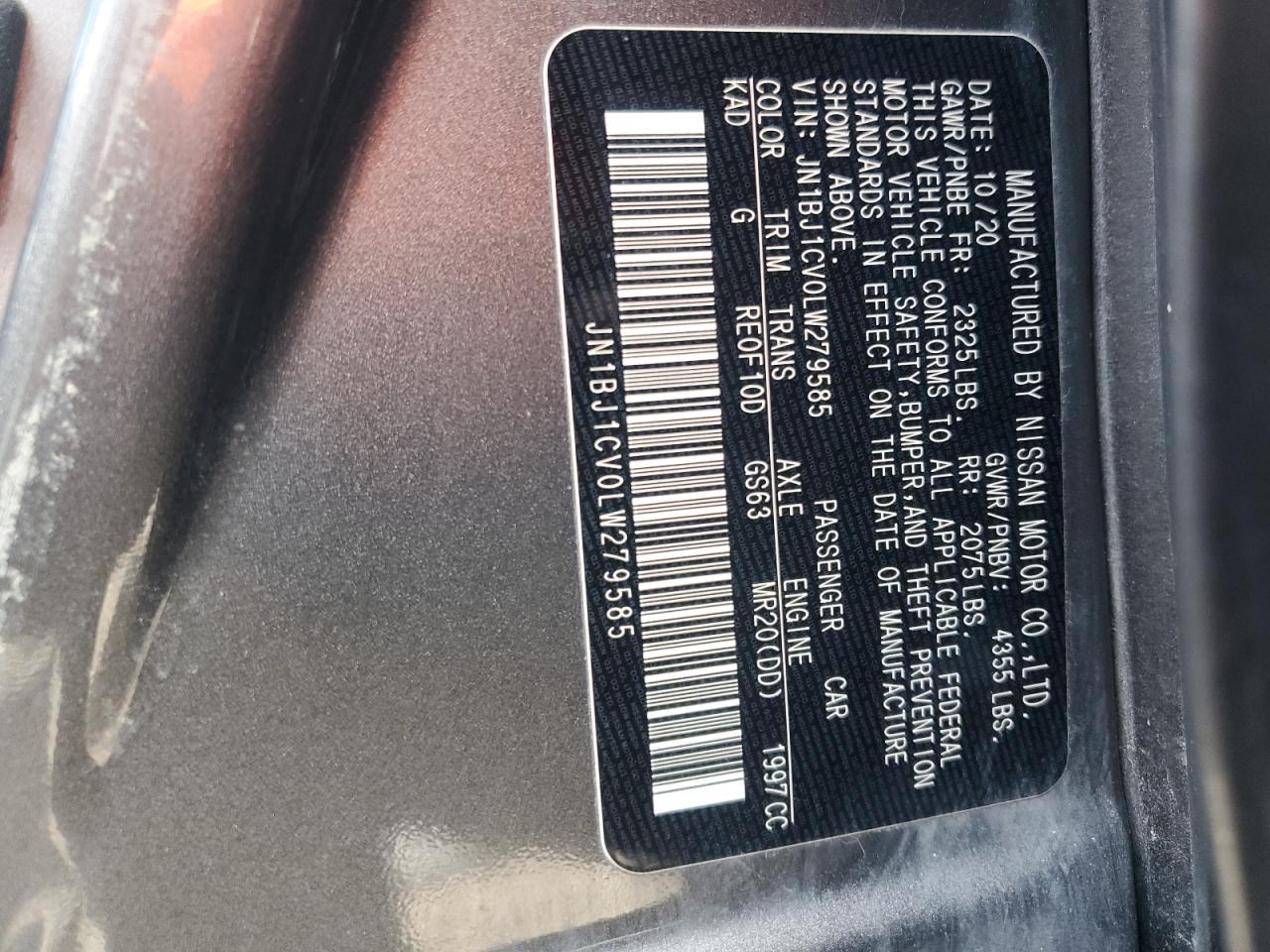 2020 NISSAN ROGUE SPORT - JN1BJ1CV0LW279585, колір - Сірий, 2.0, Бензин, із США