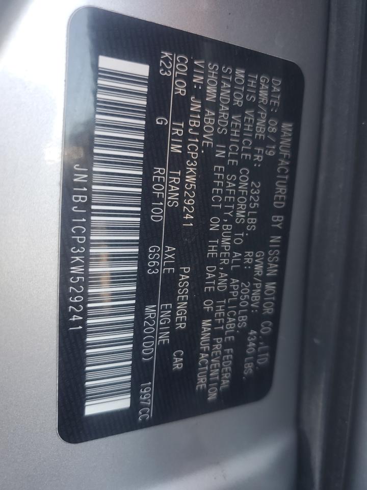 2019 NISSAN ROGUE SPORT - JN1BJ1CP3KW529241, колір - Срібний, 2.0, Бензин, із США