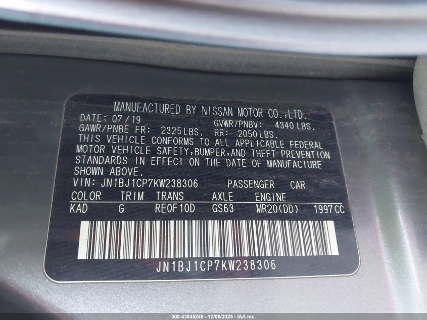 Колір СірийЦиліндри 4Привід Передній привідVIN JN1BJ1CP7KW238306Стан Заводиться та їде (перевірено)Ушкодження Передня або задня