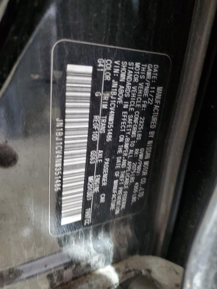 Колір ЧорнийЦиліндри 4VIN JN1BJ1CV4NW351486Стан Заводиться та їде (перевірено)Ушкодження Передня або задня