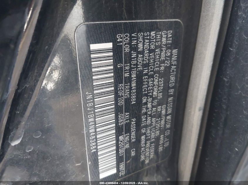 2022 NISSAN ROGUE SPORT - JN1BJ1BW4NW483884, колір - Чорний, 2.0, Бензин, Повний привід із США