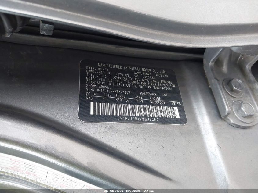 2019 NISSAN ROGUE SPORT - JN1BJ1CRXKW627362, колір - Сірий, 2.0, Бензин, Повний привід із США
