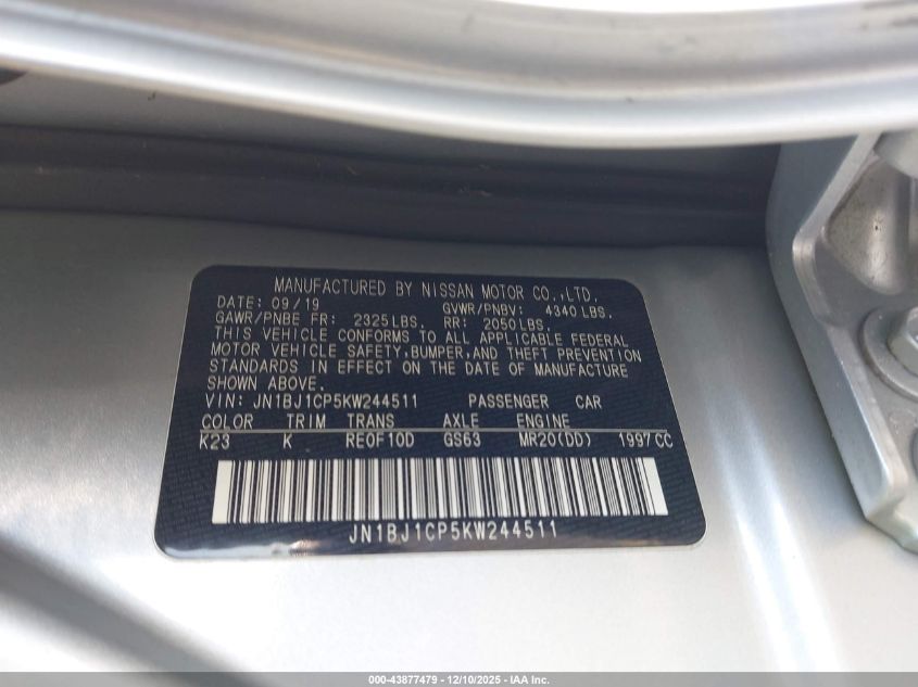 Колір СрібнийЦиліндри 4Привід Передній привідVIN JN1BJ1CP5KW244511Стан СтаціонарноУшкодження Передня ліва