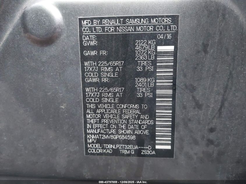 2016 NISSAN ROGUE S