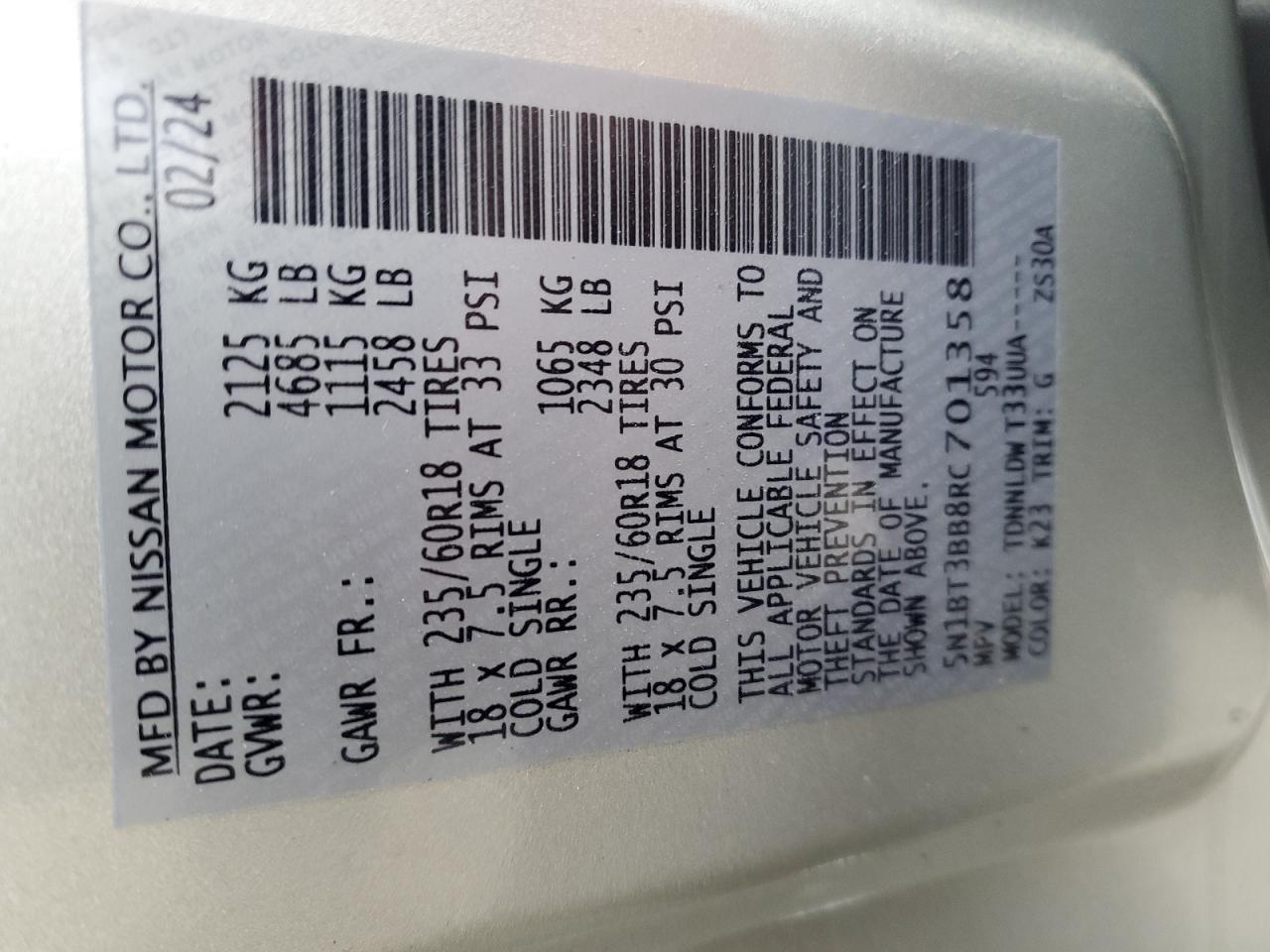 Колір СрібнийЦиліндри 3Привід Повний привідVIN 5N1BT3BB8RC701358Стан НевідомоУшкодження Передня або задня
