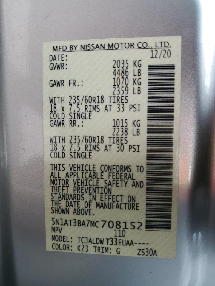 2021 NISSAN ROGUE - 5N1AT3BA7MC708152, колір - Срібний, 2.5, Бензин, із США
