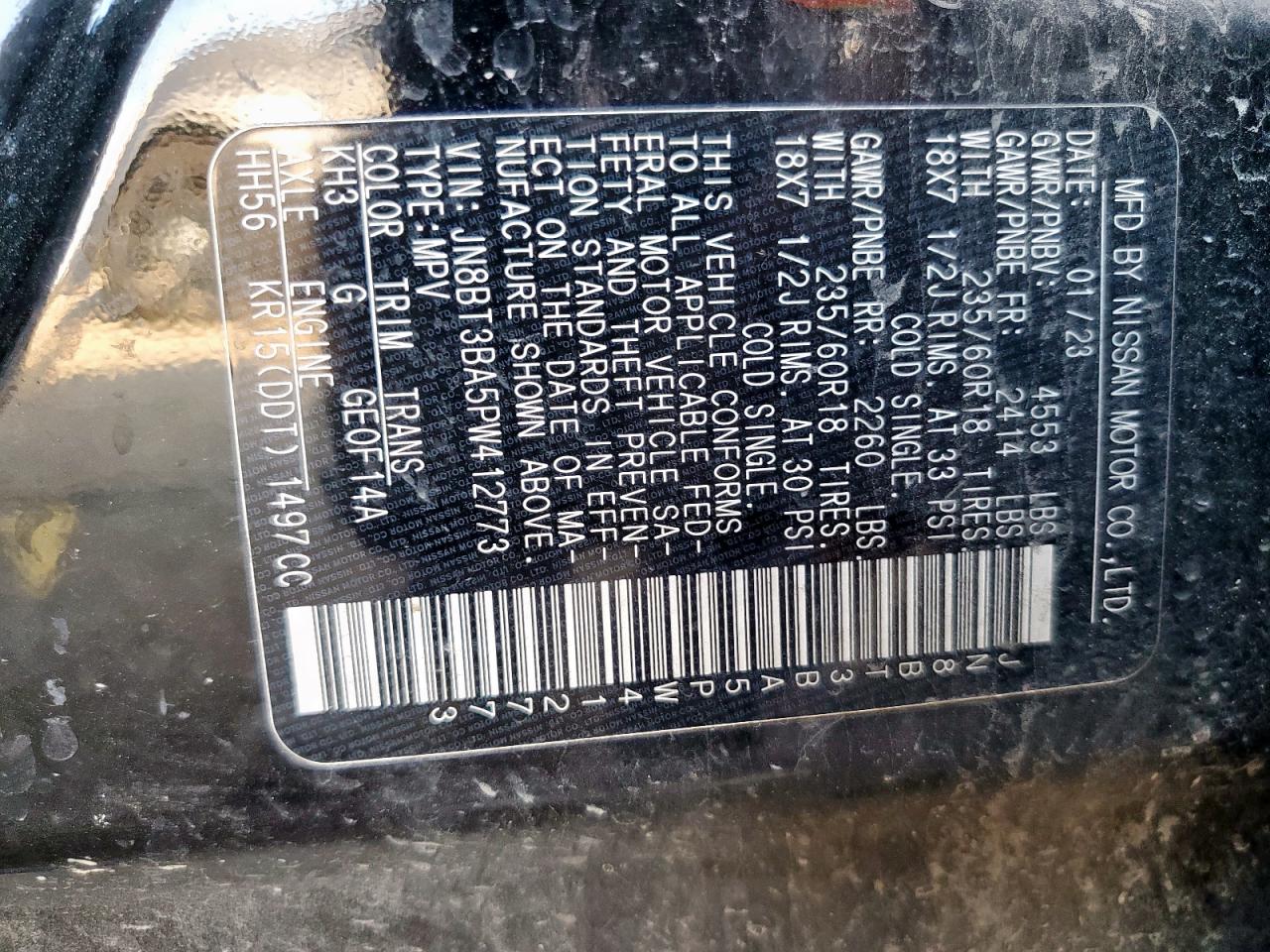 Колір ЧорнийЦиліндри 3VIN JN8BT3BA5PW412773Стан ЗаводитьсяУшкодження Передня або задняДата аукціона 2025-10-06