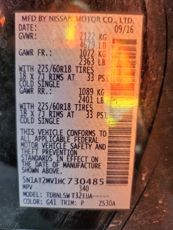 2017 NISSAN ROGUE - 5N1AT2MV1HC730485, колір - Чорний, 2.5, Бензин, Повний привід із США