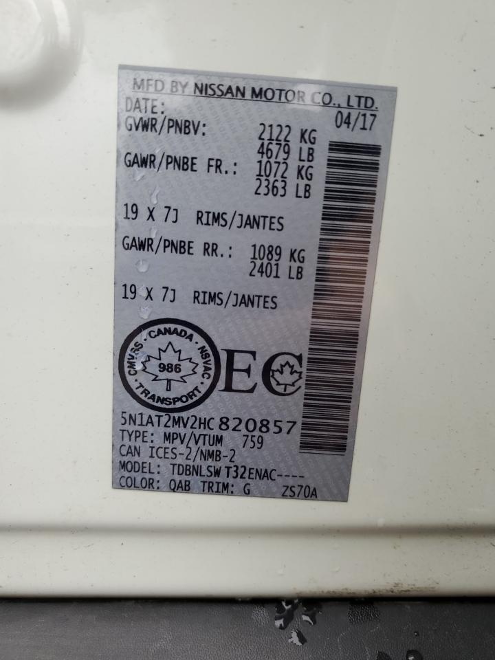 2017 NISSAN ROGUE - 5N1AT2MV2HC820857, колір - Білий, 2.5, Бензин, Повний привід із США