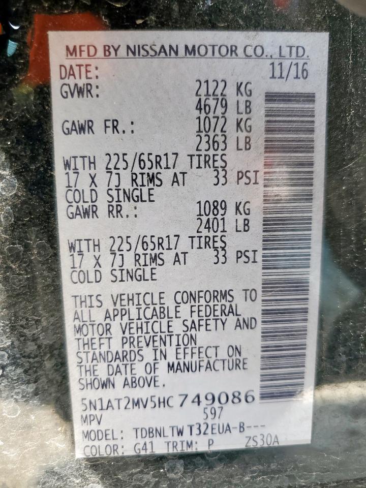 2017 NISSAN ROGUE - 5N1AT2MV5HC749086, колір - Чорний, 2.5, Бензин, Повний привід із США