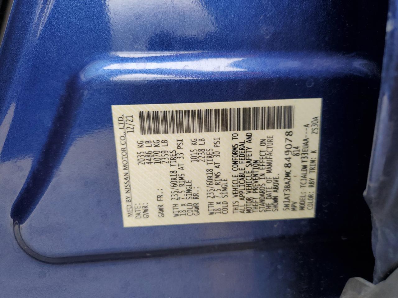 Колір СинійЦиліндри 4VIN 5N1AT3BA2MC849078Стан Заводиться та їде (перевірено)Ушкодження Передня або задня