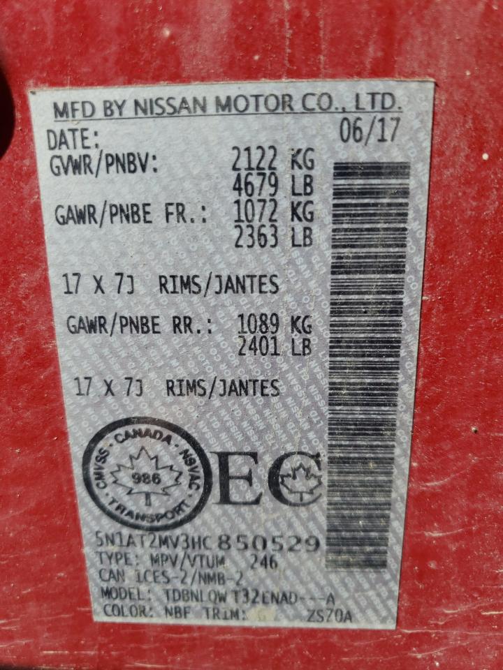 2017 NISSAN ROGUE - 5N1AT2MV3HC850529, колір - Червоний, 2.5, Бензин, Повний привід із США