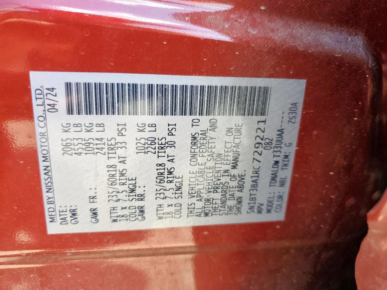 2024 NISSAN ROGUE - 5N1BT3BA1RC729221, колір - Бордовий, 1.5, Бензин, із США