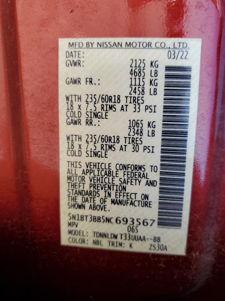 2022 NISSAN ROGUE - 5N1BT3BB5NC693567, колір - Червоний, 1.5, Бензин, Повний привід із США