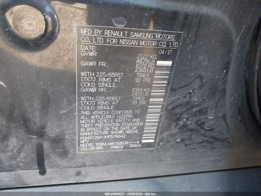 2017 NISSAN ROGUE - KNMAT2MV3HP574642, колір - Чорний, 2.5, Бензин, Повний привід із США
