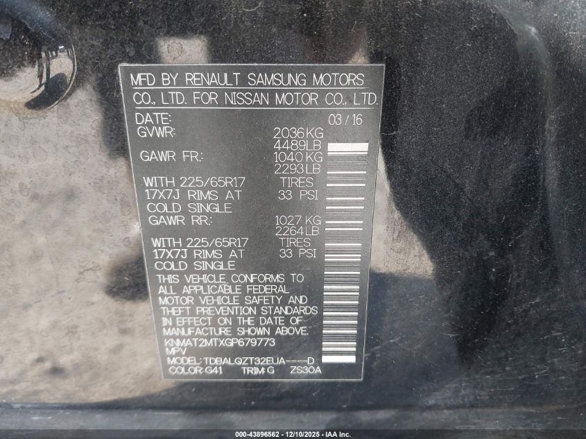2016 NISSAN ROGUE - KNMAT2MTXGP679773, колір - Чорний, 2.5, Бензин, Передній привід із США
